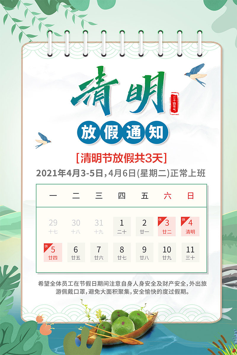 當前位置: 網(wǎng)站首頁 >> 山東礦安機電2021年清明節(jié)放假通知