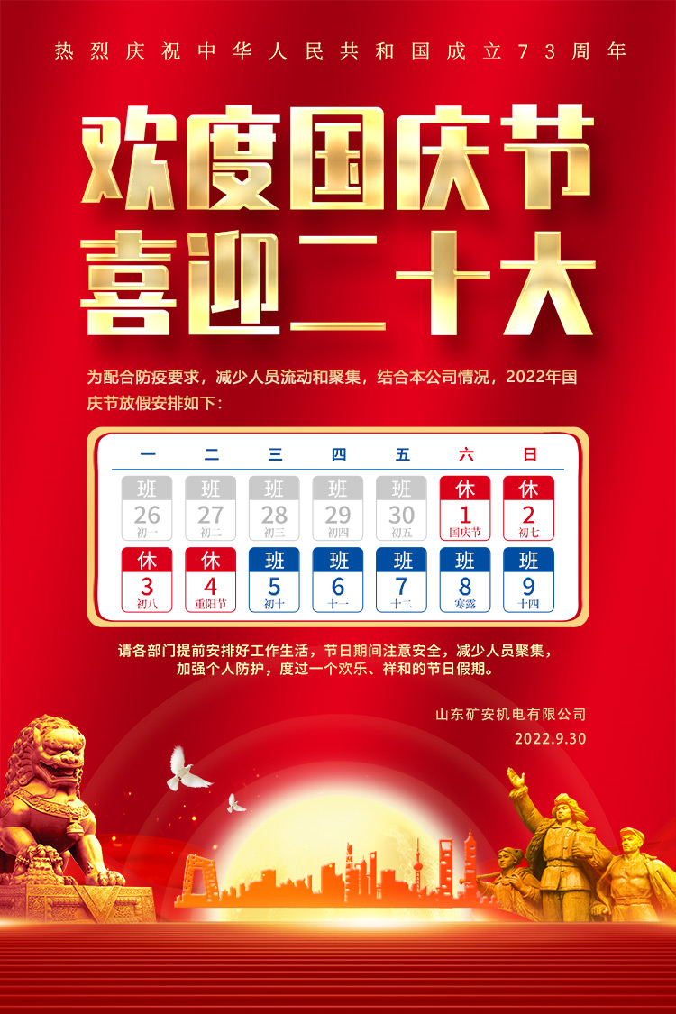 山東礦安機電有限公司2022年國慶節(jié)放假通知