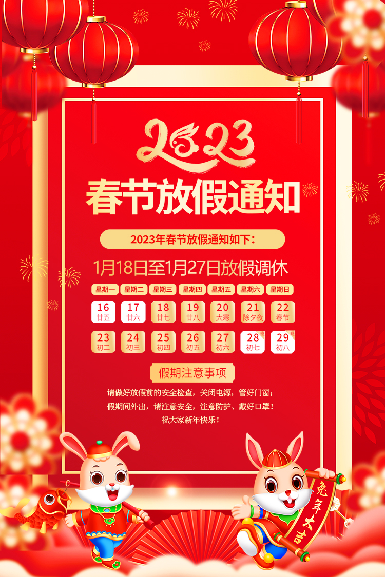 山東礦安機(jī)電有限公司2023年春節(jié)放假通知